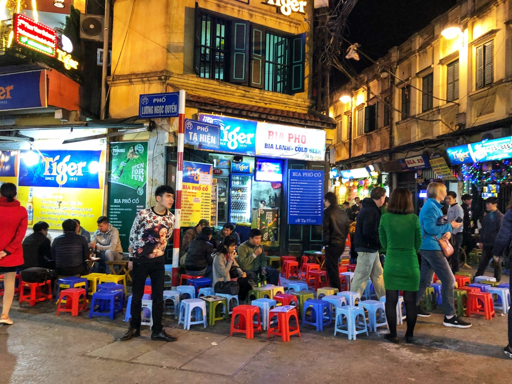 The intersection of Ta Hien and Luong Ngoc Quyen is known as beer corner and the area has expanded into beer street. The sidewalks are packed with small plastic tables and miniature sized stools. It is lively, eccentric, and top notch for people watching. This is THE place to be for cheap beer, socializing, and entertainment.