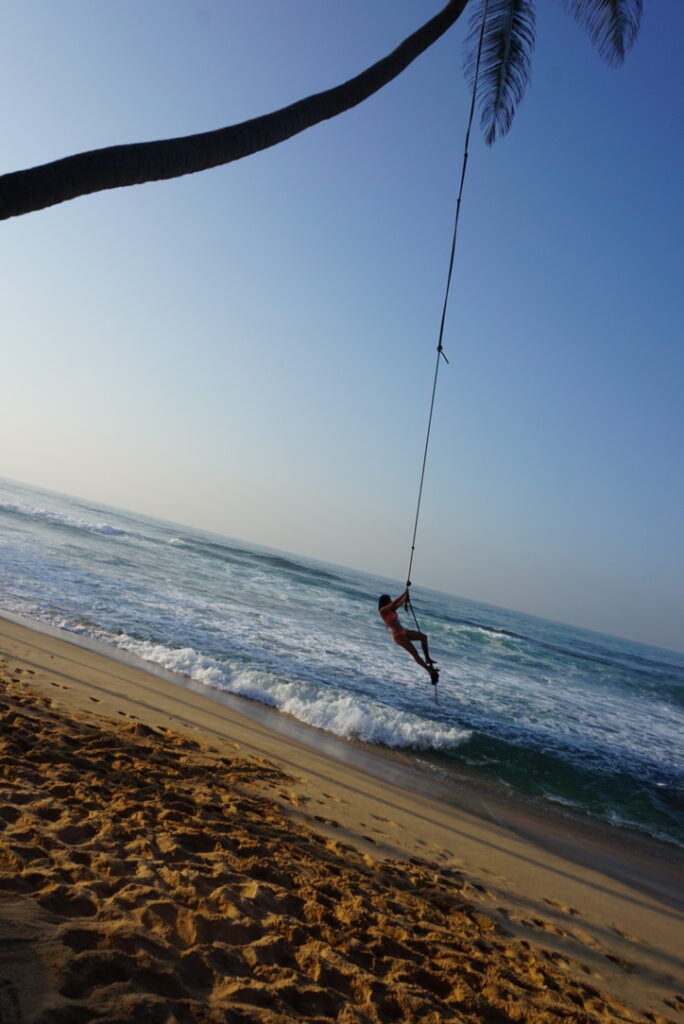 Lastly, for your Sri Lanka travel itinerary you must try out the Dalawella palm tree swing! If you are walking from the same direction as I did, you will come upon the “famous” palm tree rope swing before reaching Dalawella beach. It’s right in front of Dream Cabana guesthouse. The rope swing is manned by the staff of Dream Cabana, it costs 500 rupees, which is less than $2 USD.